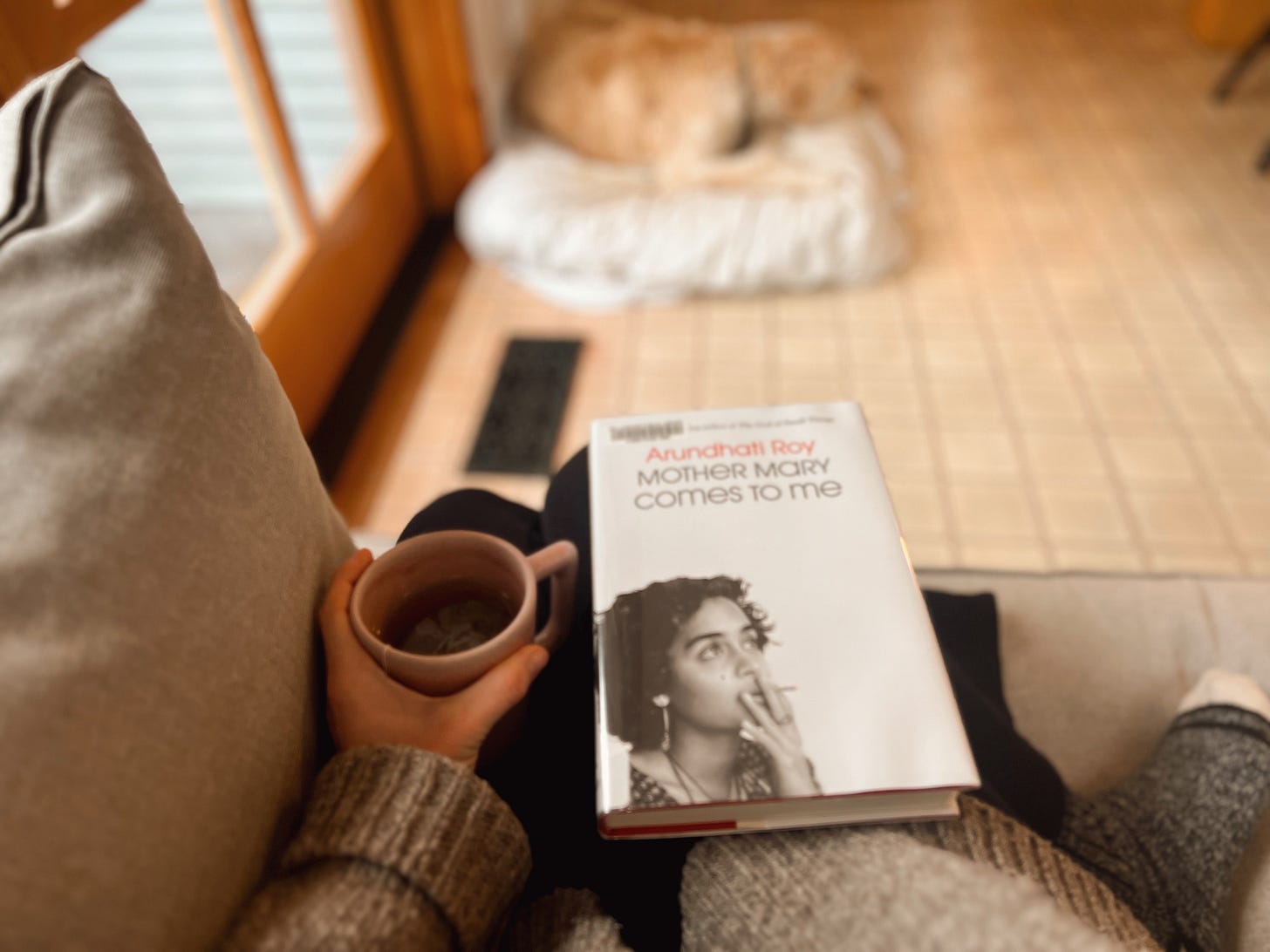 Slowing down: I’ve been working from our kitchen table most days so I can keep an eye on my senior dog, who is starting to need more help getting around. I’ve also been spending time on our makeshift kitchen couch, a la Catherine Newman, originator of the kitchen couch TM. I hauled our patio loveseat indoors for the rainy season and it’s been such a soft landing spot.
